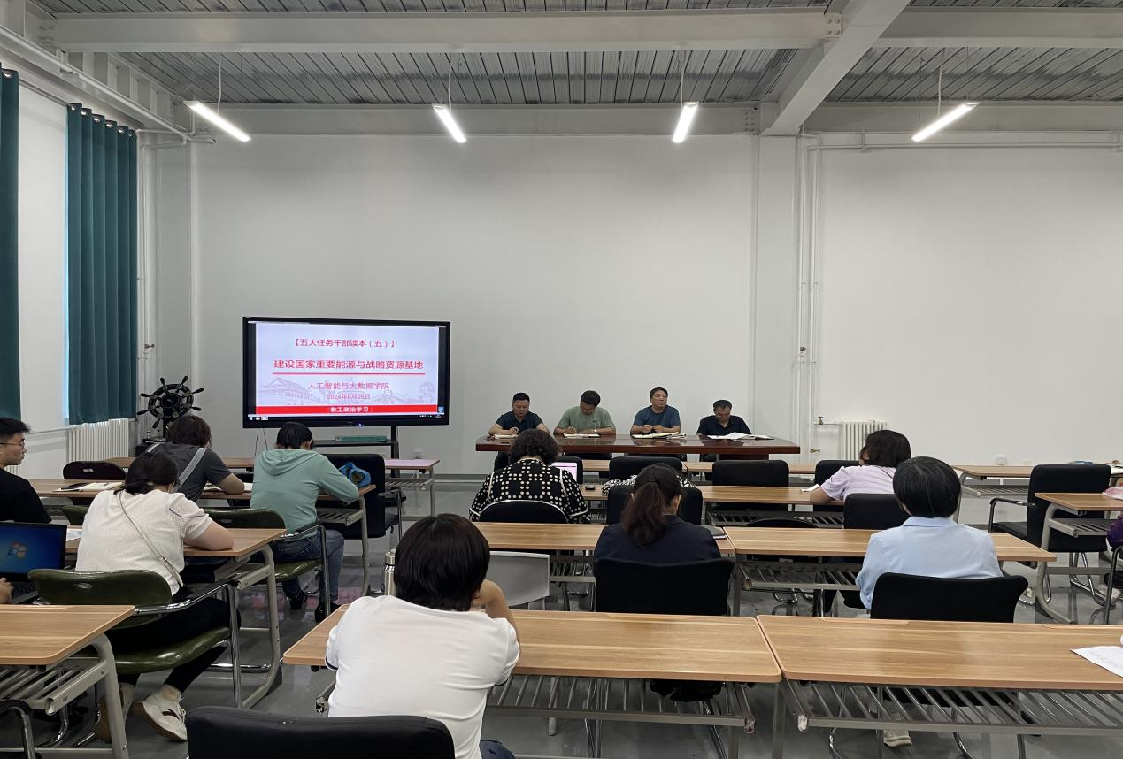6月26日下午2:30在知行楼C118会议室,304永利全体教职员工集中学习了五大任务干部读本,党总书记朱福生领学了第三章建设国家重要能源与战略资源基地。