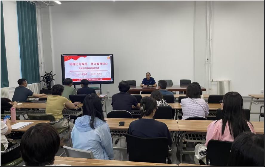 为了进一步强化党员教师的纪律意识,6月26日下午,304永利教工二支部书记栗慧峰于行知楼C118开展了专题党课--《明确行为规范,坚守教育初心》,支部党员参加了此次学习。