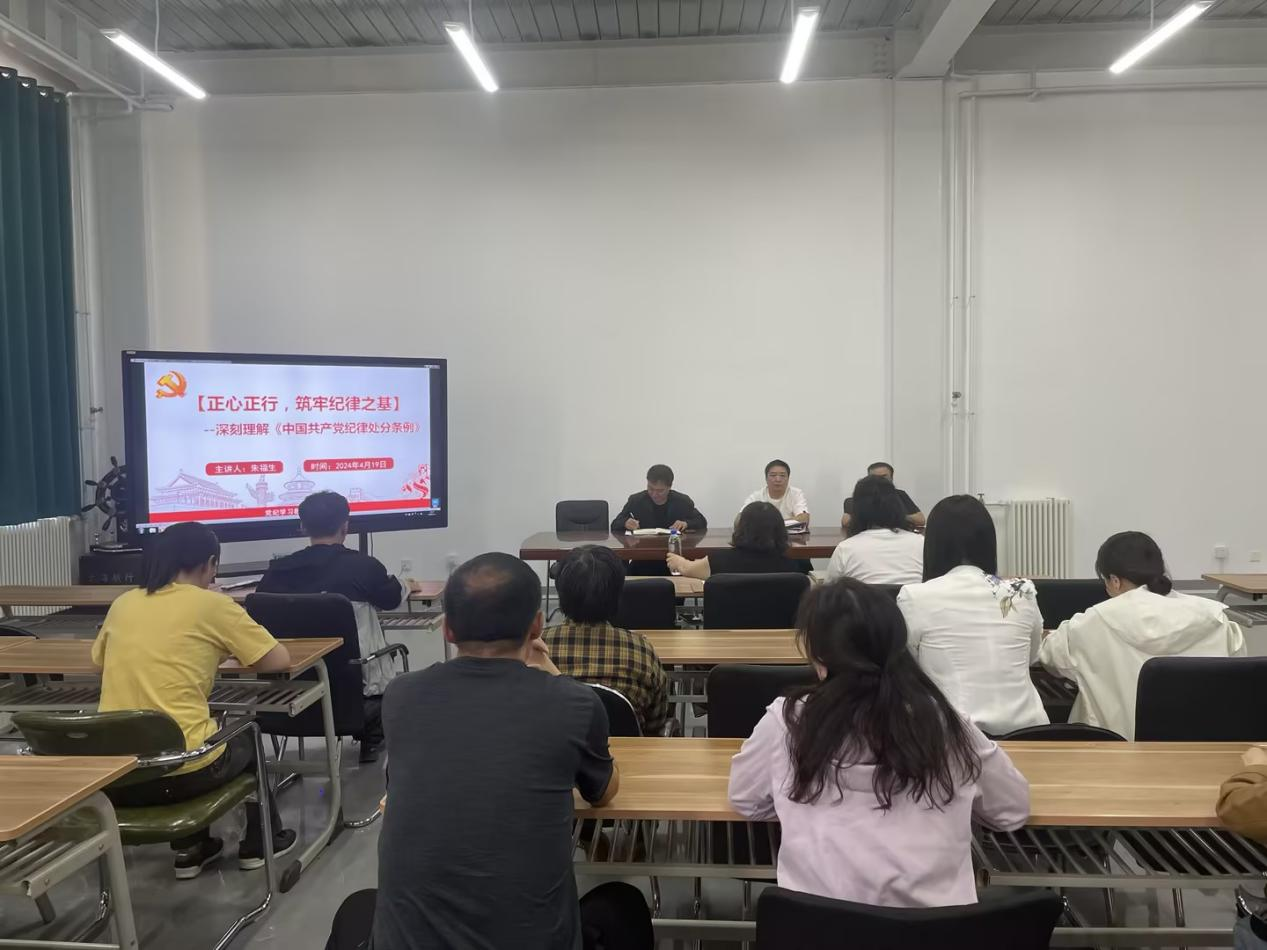 为深入学习贯彻习近平总书记关于党纪学习教育的重要讲话和重要指示精神, 进一步加强党员干部的党性修养和纪律意识,4月19日下午,304永利在东山实训楼C118室开展中国共产党纪律处分条例专题讲座。304永利书记朱福生主讲,304永利全体党员教职工参加。