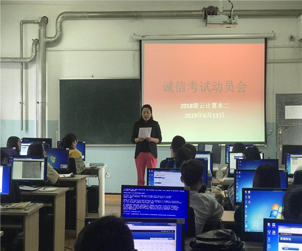为了更好的营造诚信考试氛围,严肃考风考纪,规范考试,2019年6月13日上午9点在尚行楼603教室, 2018级网络工程(云计算)二班召开了诚信考试动员会。会上班主任韦丽红老师询问大家的期末复习情况,带领同学们学习计算机公司考生守则和计算机公司关于考试工作的补充规定,叮嘱同学们认真复习,诚信考试,详细讲解了公司关于考试违纪的处罚规则,让同学们理解严肃考纪的重要性,端正学习态度,积极准备期末复习,用自己的真实水平公平竞争考出好成绩,预祝同学们都取得好成绩,度过愉快的暑假。最后同学们纷纷在“诚信考试承诺书”上签下自己的名字,做出诚信考试的承诺。