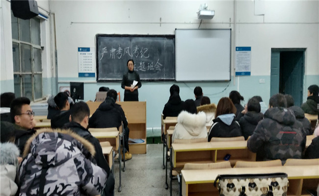 佟晓妍老师首先对本学期同学的学习与生活给予积极的肯定,再次了解本学期学习科目,并对各个科目进行分析,同时对期末考试做出如下安排:要求员工考试提前20分钟进入考场,强调员工携带身份证和员工证(或校园一卡通),要求员工考试时上交手机,不要与监考老师发生冲突,自觉遵守考场纪律。要检查班级、姓名、学号等基本信息,试卷答完后要等监考老师通知可以交卷才能离场。杜绝缺考和违纪现象,如有突发情况需及时向老师上报。