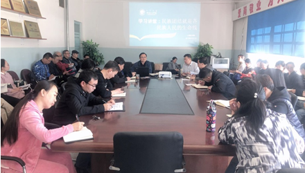 522, 计算机公司党总支组织全体教职工集中学习“民族团结就是各民族人民的生命线”教育活动,党总支书记布仁白乙拉主讲,公司全体教师参加会议。
