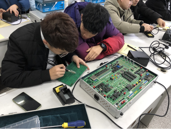 2019-2020学年第二学期,为提升员工的专业实践操作能力,计算机公司张玉春老师从2019年10月23日到11月20日,连续5周利用周三下午四节课时间为2018级计算机科学与技术专业员工开展了数字电路与逻辑设计课的焊接课外兴趣小组培训(共计20课时),内容包括普通焊接、切片元件焊接、多引脚芯片托焊及万用表的基本使用和电压测量误差处理,通过专业课外实践活动推进了学风建设,员工们学会了在电路板上焊接原件及判断电路的故障等,对数字电路与逻辑设计课有了更深的认识,学到了比课堂内容更多的操作知识,提高了员工对专业学习的兴趣及学习主动性。