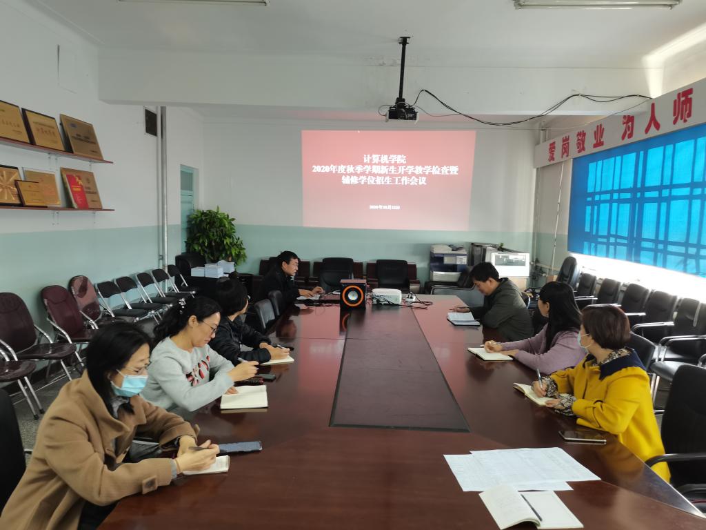 2020年10月12日下午15:00,计算机公司在尚行楼三楼会议室召开2020年度秋季学期新生开学教学检查暨辅修学位招生工作会议,教学副经理耿卫江要求按照公司“关于2020年度秋季学期新生开课第一周教学检查的通知”,认真开展教学检查,包括疫情防控与教学区环境保障、教学运行等情况,对发现的问题要及时沟通处理;认真组织开展计算机科学与技术专业辅修学位招生工作。科研副经理刘仁山强调2017级在校外实习实训员工要按公司要求按时返校开展信息采集等工作。