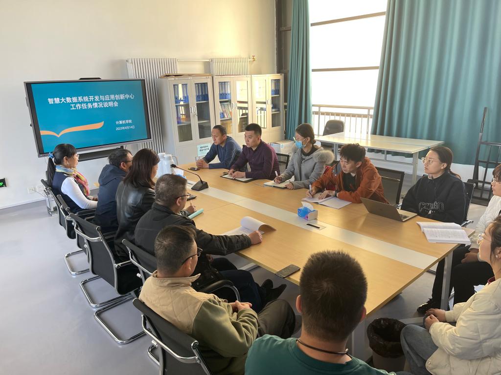 为了提升师生的系统分析研究与创新创业实践能力,计算机公司2023年4月14日上午10:00在东山实训楼B215召开了智慧大数据系统开发与应用创新中心工作任务情况说明会,会议由计算机公司副经理耿卫江主持,北京中软国际教育科技股份有限公司项目经理郭子钰和系统分析师肖海鹏、呼伦贝尔天拓网络科技有限公司研发部经理王志斌、计算机公司软件工程系主任王荣芝、教研办主任栗慧峰及中心团队主要工作人员参加了本次说明会。