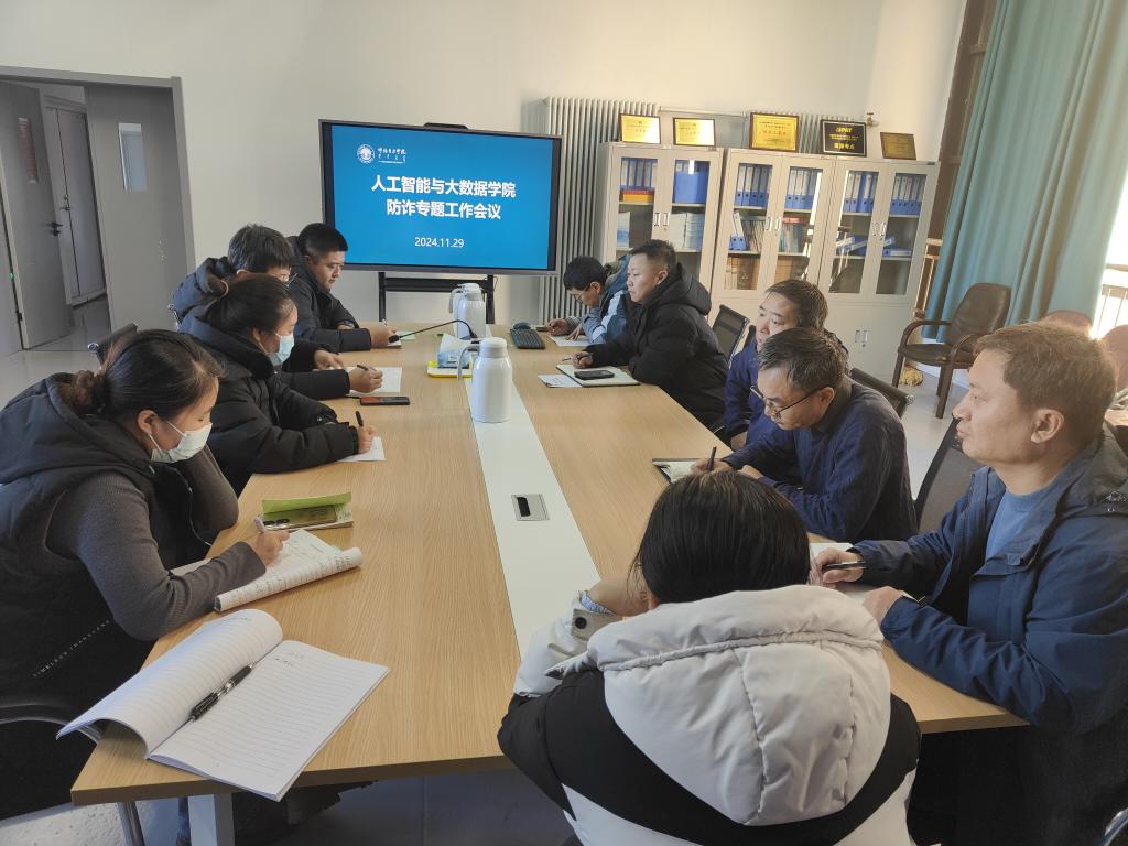11月29日上午,304永利全体班子成员和全体辅导员班主任在行知楼B215会议室召开防诈工作专题会议,并就期末安全离校等工作进行总体部署。