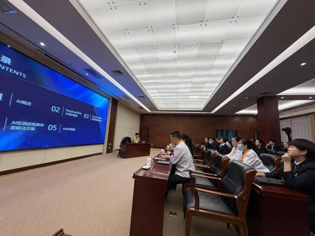会上,刘英杰围绕AI技术概述、DeepSeek平台操作、跨应用协同、酒店场景实践及未来趋势五大模块展开系统讲解。针对酒店行业痛点,重点解析了AI在服务流程优化、资源智能调度、精准营销及安全管理等场景的应用方案,并结合实际案例演示技术操作要点。参训人员纷纷表示,课程内容兼具理论高度与实践价值,为宾馆数字化转型提供了清晰路径。
