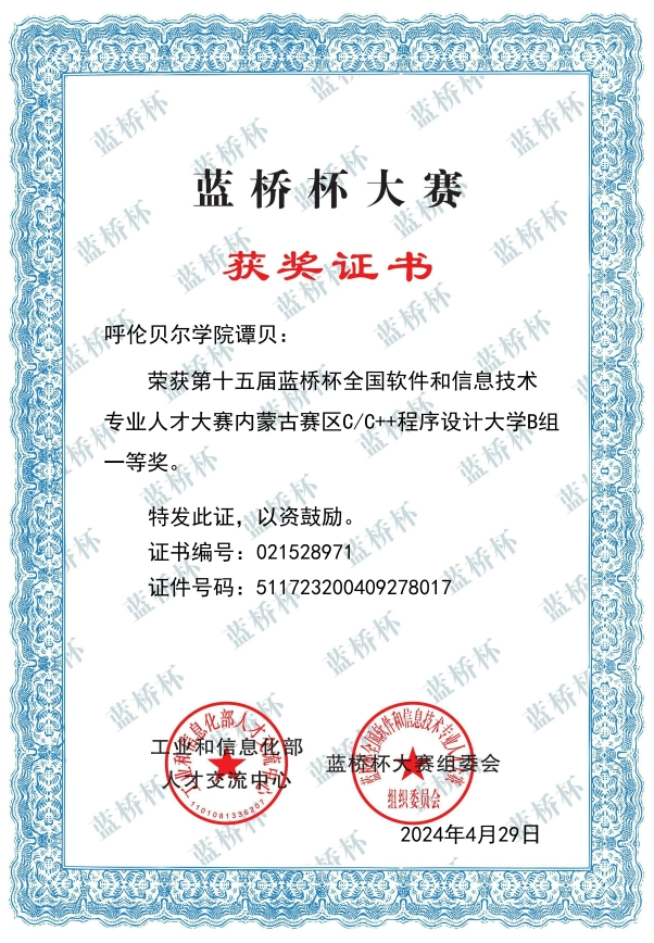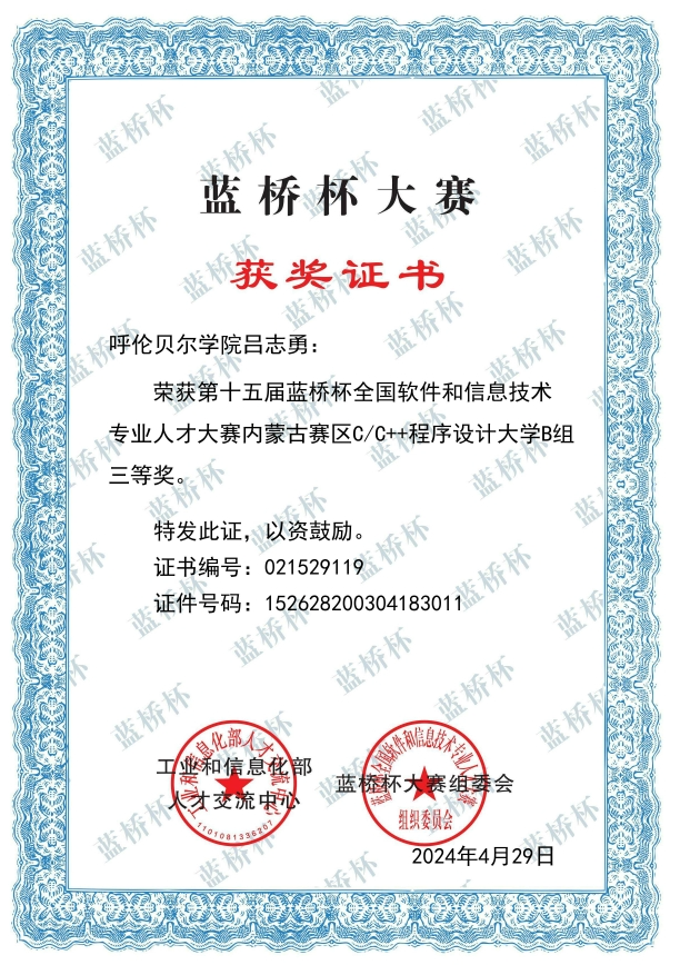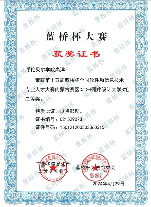 2024年第十五届蓝桥杯全国软件和信息技术专业人才大赛内蒙古赛区获奖信息.pdf