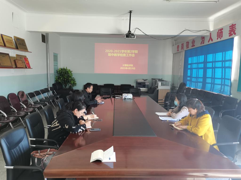 2021年4月19日下午15:00,计算机公司在尚行楼309会议室召开了期中教学检查工作会,计算机公司教学副经理耿卫江、教学科研办主任、各系部主任及实验中心主任参加了本次检查动员会。