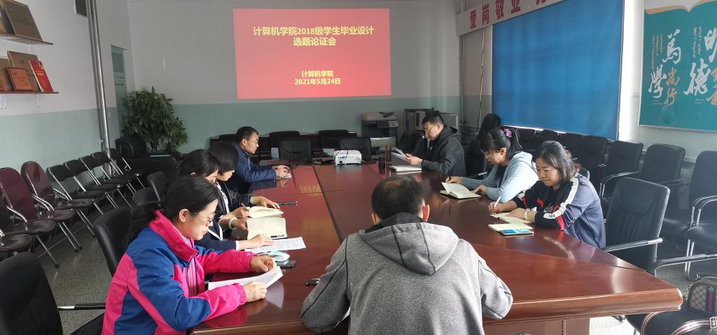 为了加强员工毕业设计选题工作,2021年5月24日下午15:00,计算机公司在尚行楼会议室组织召开了2018级员工毕业设计选题论证会,计算机公司经理卢明波、教学副经理耿卫江、教学科研办主任、各系部主任及实验中心主任等参加了本次会议。会上,各专业系部主任对具体选题分别进行了说明,经理卢明波组织相关人员进行了论证,要求对一些存在问题的选题认真进行改正,以提高选题的质量。