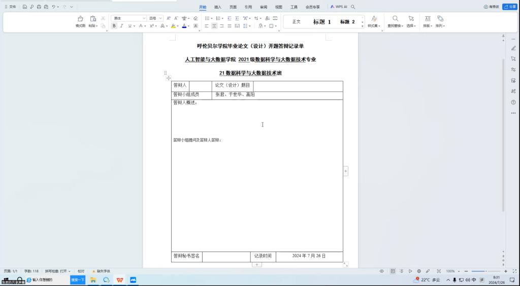 2024年7月26日上午8点半,数据科学与大数据技术系通过腾讯会议线上成功举办了2025届51名毕业生毕业设计开题答辩。本次答辩由系主任张君老师主持,耿卫江副经理、于世华老师和高阳老师担任评委。