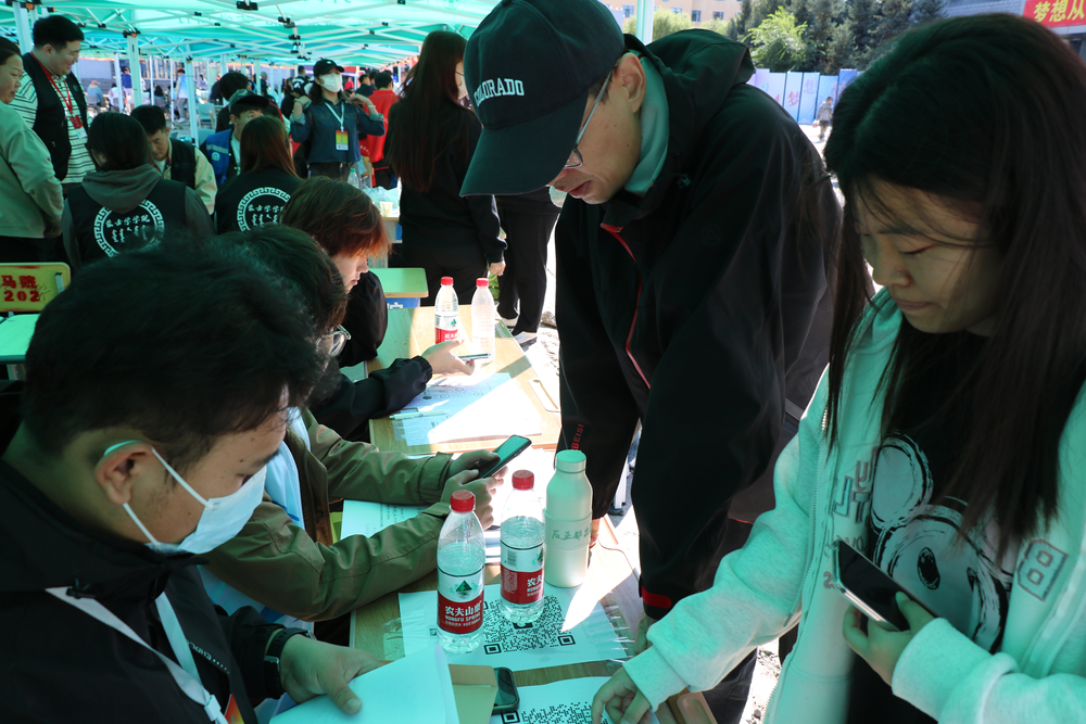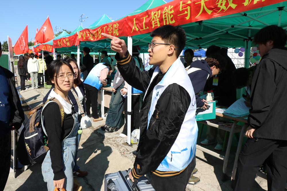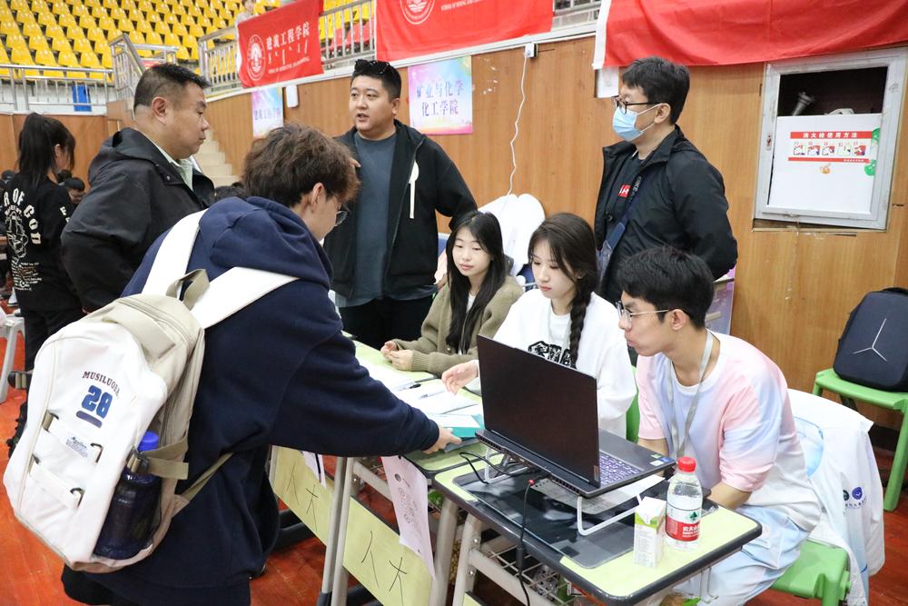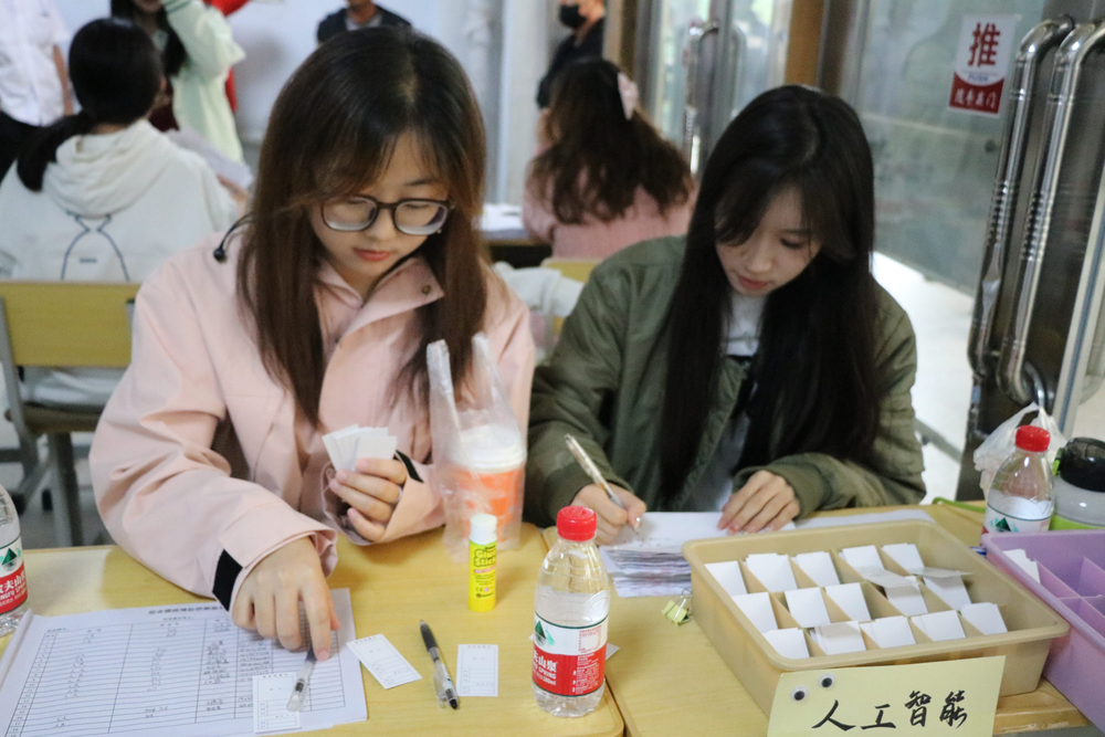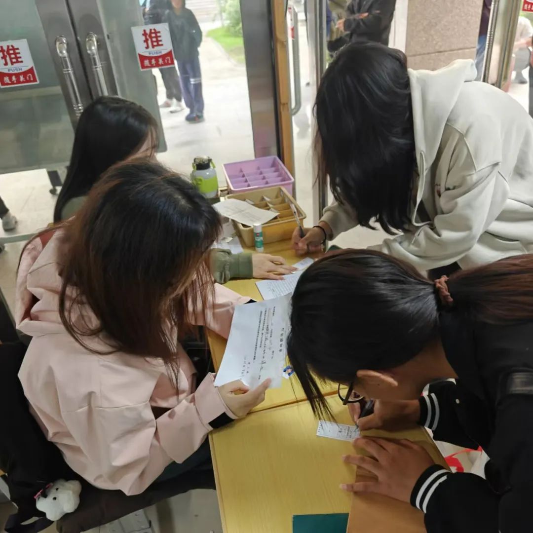 视角再次聚焦,体育馆内的工作同样出彩。学姐学长们帮助新生完成报道。