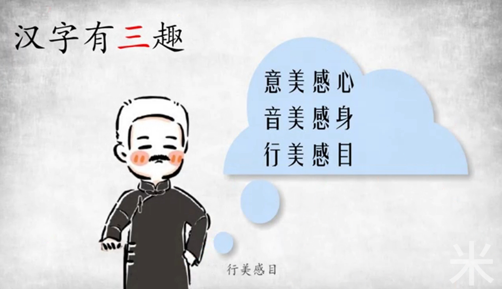 汉字是中华民族文化的重要载体,具有深厚的历史和文化价值。作品以二维动画的形式从汉趣于意、趣于音、趣于行三方面讲述有趣的汉字。作品使用万彩动画和PR进行制作,以简洁明了,形象生动的形式向小孩子介绍汉字,以此加深他们对汉字的认知和兴趣。